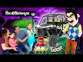 Today we stay at a nice toy hotel and they say they leave us a secret surprise on the table but there wasn't a huge surprise! We saw Hello Neighbor outside driving a RZR around and he throws down some Tech Deck Dudes scateboard toys. We have a scavenger hunt while hiding from him and save a family he had locked up upstairs. They were trying to dig an escape tunnel! We let them help open all the dudes blind bag toys and then let them keep em all!